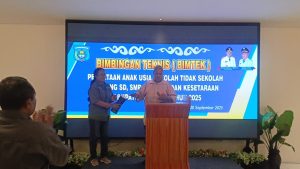 SORONG-Pemerintah Kabupaten Sorong melalui Dinas Pendidikan dan Kebudayaan menggelar Bimbingan Teknis (Bimtek) Pendataan Anak Usia Sekolah yang Tidak Sekolah, Selasa (17/9/2025). Kegiatan yang berlangsung di salah satu hotel di Aimas ini diikuti oleh aparat kampung, tenaga pendidik, dan jajaran dinas terkait.
