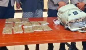 “Awalnya anggota kami mencurigai gerak-gerik pelaku. Setelah dilakukan pemeriksaan, ditemukan barang bukti dua paket ganja kering berisi 15 sachet yang di bungkus dengan plastik bening,” ujar Kapolsek.