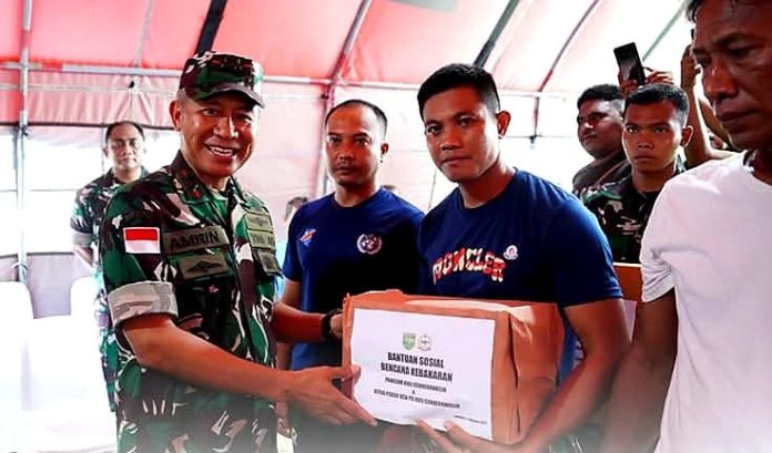 Bantuan yang diserahkan berupa paket sembako dan perlengkapan perorangan lapangan (kaporlap) yang diberikan secara langsung kepada warga yang kini menempati tenda-tenda darurat. Selain memberikan bantuan, Pangdam juga menyempatkan diri meninjau area terdampak dan memastikan kondisi kesehatan serta kebutuhan dasar para korban terpenuhi.