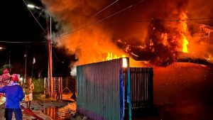 NABIRE – Kebakaran hebat melanda sebuah rumah bertingkat yang juga berfungsi sebagai kios milik Marthen Talebong (72) di Jalan Brawijaya, Kotalama, Kelurahan Morgo, Kamis (14/08/2025) dini hari.