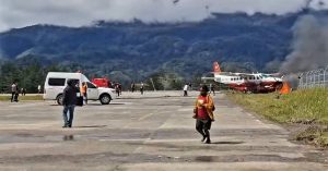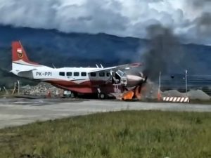 PUNCAKJAYA – Sebuah pesawat Grand Caravan milik Pemkab Puncak dengan nomor registrasi PK-PPI terbakar setelah menabrak pagar dan pos jaga Kopasgat di Bandara Aminggaru, Ilaga, Papua Tengah Senin (25/08/2025).