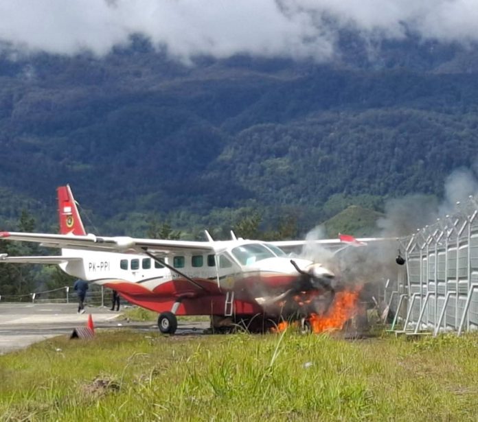 PUNCAKJAYA – Sebuah pesawat Grand Caravan milik Pemkab Puncak dengan nomor registrasi PK-PPI terbakar setelah menabrak pagar dan pos jaga Kopasgat di Bandara Aminggaru, Ilaga, Papua Tengah Senin (25/08/2025).