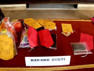 Dari hasil penyelidikan, penyidik menemukan barang bukti berupa satu bungkus plastik bening ukuran sedang berisi narkotika golongan – I jenis ganja, satu unit telepon genggam, delapan buah sabun serta minuman soda.