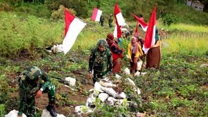 Masyarakat Papua bersama prajurit Satgas Yonif – 521/DY merayakan Hari Ulang Tahun ke-80 Kemerdekaan Republik Indonesia dengan penuh semangat Nasionalisme dan kebanggaan.