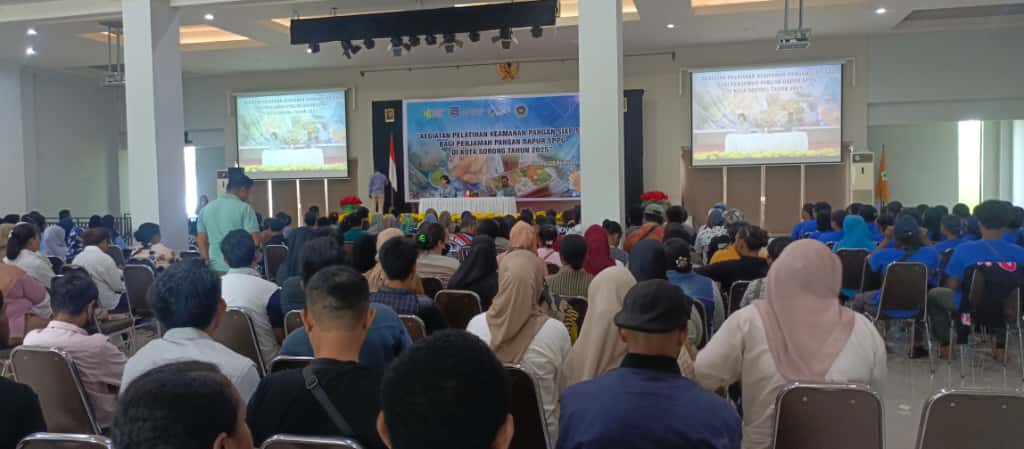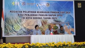 KOTA SORONG-Dalam upaya memperkuat kesadaran akan pentingnya keamanan pangan dan higienitas dapur, Satuan Pelayanan Pemenuhan Gizi (SPPG) se-Kota Sorong menggelar kegiatan Pelatihan Keamanan Pangan Siap Saji bagi Penjamah Pangan Dapur SPPG Kota Sorong Tahun 2025, bekerja sama dengan Dinas Kesehatan Kota Sorong, Badan Gizi Nasional Republik Indonesia, serta didukung oleh Kementerian Kesehatan RI melalui program Germas (Gerakan Masyarakat Hidup Sehat).