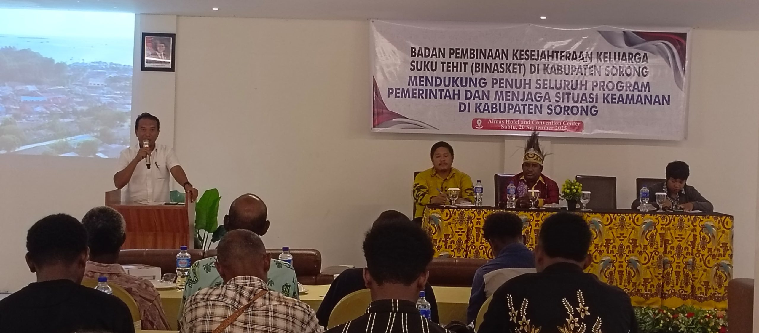SORONG- Dukungan terhadap program unggulan Presiden Prabowo Subianto kembali menguat di Papua Barat Daya. Kali ini datang dari masyarakat Suku Tehit yang tergabung dalam Badan Pembinaan Kesejahteraan Keluarga Suku Tehit (BINASKET) Kabupaten Sorong.