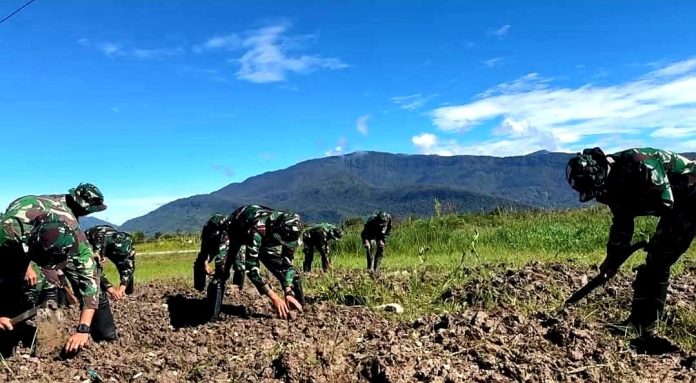 DEIYAI – Di tengah tantangan geografis dan keterbatasan akses logistik, para prajurit TNI – AD dari Satgas Pamtas Kewilayahan RI-PNG Yonif – 711/Raksatama menunjukkan bahwa kemandirian pangan bisa dimulai dari langkah kecil namun nyata.