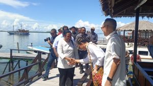 SORONG – Sabtu (4/10/2025), dermaga Sarajeti Doom menjadi saksi penyambutan meriah kedatangan Gubernur Papua Barat Daya, Elisa Kambu. Menggunakan speed boat, rombongan gubernur disambut hangat oleh tokoh pemerhati perempuan dan anak, Engelin Y. Kardinal, bersama Wakapolda Papua Barat Daya, Kombes Pol. Semmy Ronny Thabaa, S.E. Prosesi penyambutan kian berwarna dengan pengalungan noken oleh jemaat GKI Bethel Doom, sebuah simbol kasih dan penerimaan.