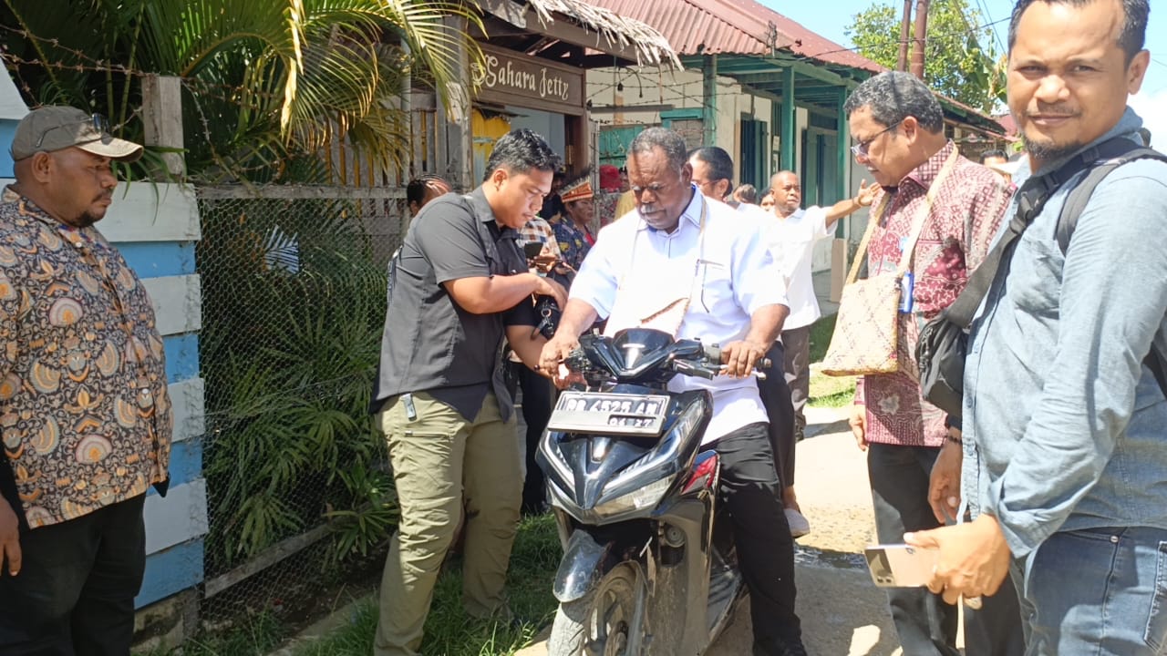 Yang menarik, dari dermaga menuju lokasi kegiatan, Elisa Kambu bersama istri memilih menumpang motor matic alat transportasi umum di Pulau Doom selain becak. Adegan sederhana ini menegaskan karakter kepemimpinan yang membumi. Dengan wajah bersahaja, gubernur terlihat membonceng istrinya yang tampak nyaman, sebuah gambaran keseharian yang lekat dengan masyarakat setempat.