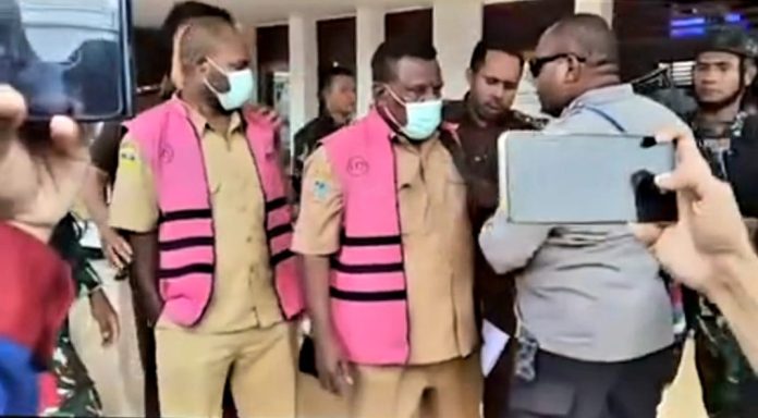 “Dua orang kami tetapkan sebagai tersangka yaitu pejabat yang menandatangani pencairan anggaran. Mereka tahu dokumen yang diajukan fiktif namun tetap menandatangani sehingga anggaran bisa dicairkan secara melawan hukum,” tegas Kajari Nabire.